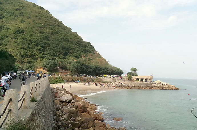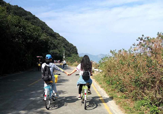 上午10:00,德立達的家人們抵達西沖楊梅坑,進行第一項騎自行車活動。蜿蜒的海邊公路,一邊是青山一邊是大海,藍天白云之下,享受迎面而來的愜意海風。