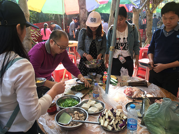 下午13:30左右,參觀完地質博物館,不少小伙伴已經饑腸轆轆了!別急,下一個項目就是吃!吃?。〕裕。。〔贿^這個吃得自己動手哦,組個小團隊,分工開干!