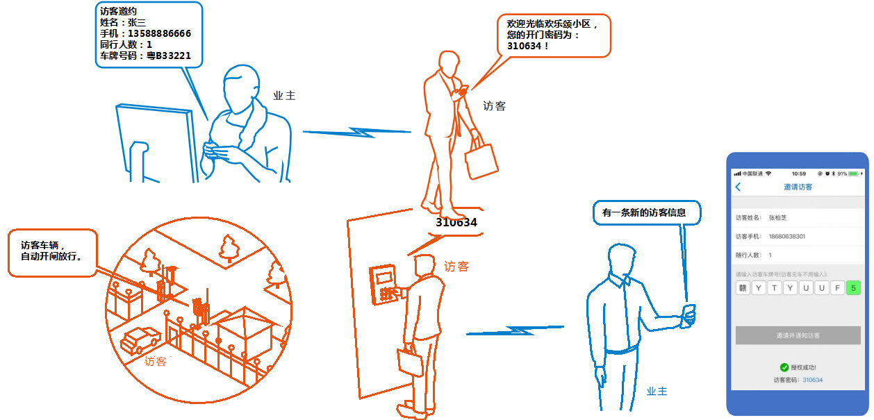 與門禁系統(tǒng)緊密相關(guān)的便是訪客系統(tǒng),只不過門禁系統(tǒng)主要是針對小區(qū)居民,而訪客系統(tǒng)則是專門針對外來訪客而設(shè)置的。