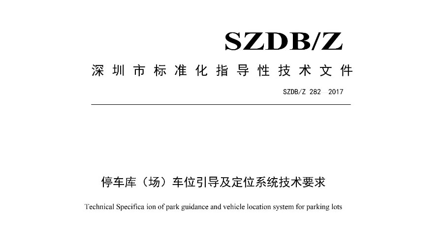 由深圳市市場和質量監督管理委員會、深圳市安防產業標準聯盟組織起草的標準化指導性技術文件《停車庫(場)車位引導及定位系統技術要求》(編號:SZDB/Z 282-2017)的主要起草單位深圳市德立達科技有限公司,為標準的順利頒布做出了多項停車引導方案,具體的實施流程等等,獲得了參編單位的一致肯定;彰顯出德立達在停車行業的重要角色,同時體現了德立達在智慧社區、智慧停車領域領先的技術實力和領導地位。